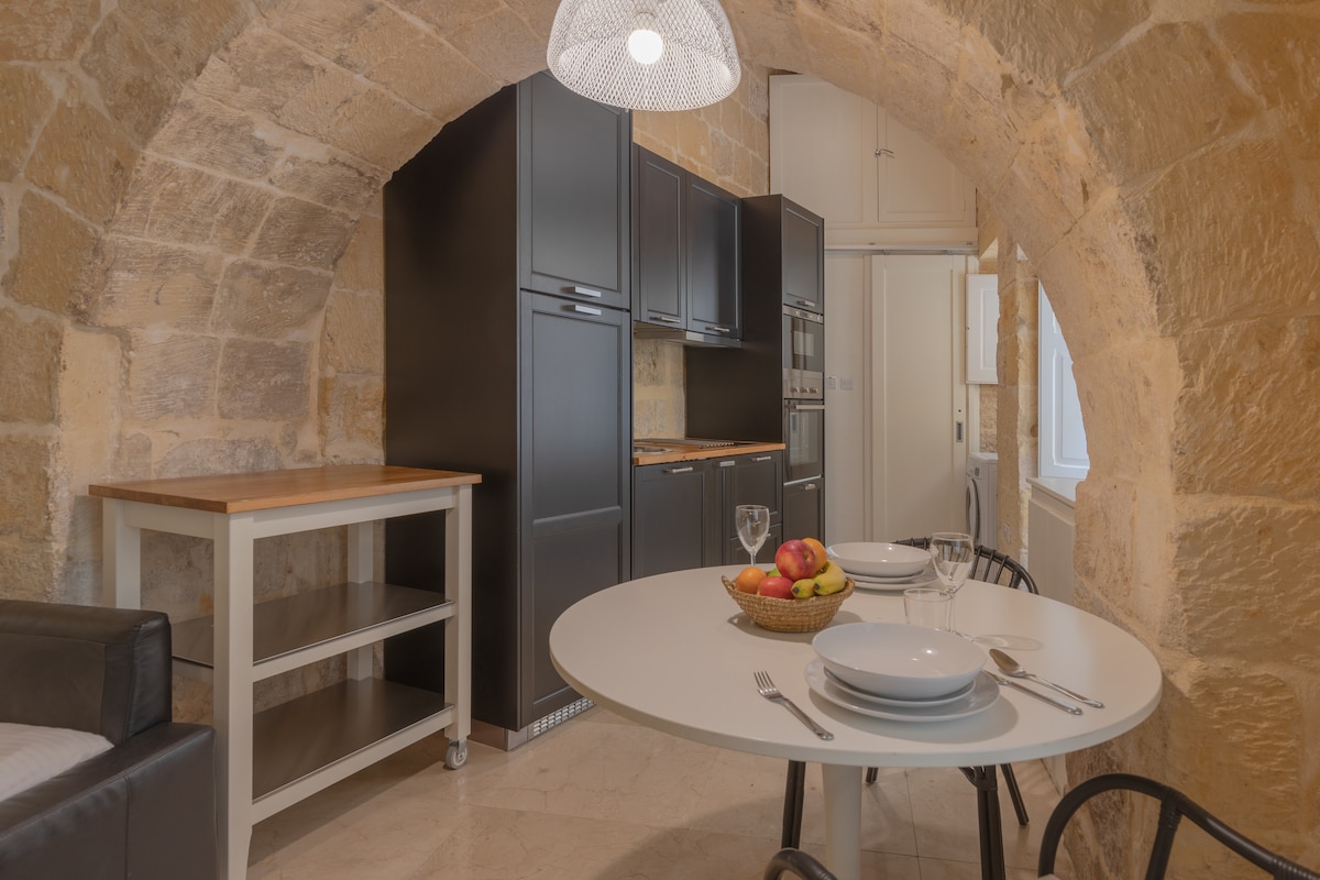 Naš šarmantni novo renovirani 300 godina star studio apartman, nalazi se u srcu Gozo 's Capital City. Objekat u prizemlju uživa obilje prirodnog svetla i završen je prirodnim kamenim podovima i prelepim izloženim kamenim zidovima. Sobe uživaju u visokim tavanicama koje održavaju prostor hladnim i svježim za sunčano vrijeme na Gozu.