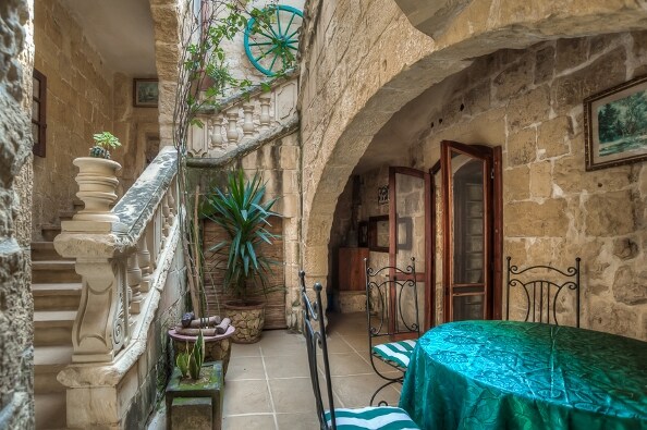 Within the narrow alleys of the old town of Victoria in Gozo is this 500+ year old house with private outdoor courtyard. All the amenities of the town (shops, restaurants/bars , supermarkets) are close by or only a short walk away. The alleys are traffic free and are therefore quiet and peaceful. The main bus terminus for the island is a 10 minute walk away. Victoria is at the centre of the island so it is easy to explore everywhere from here. Fully licenced by the Malta Tourism Authority (MTA).