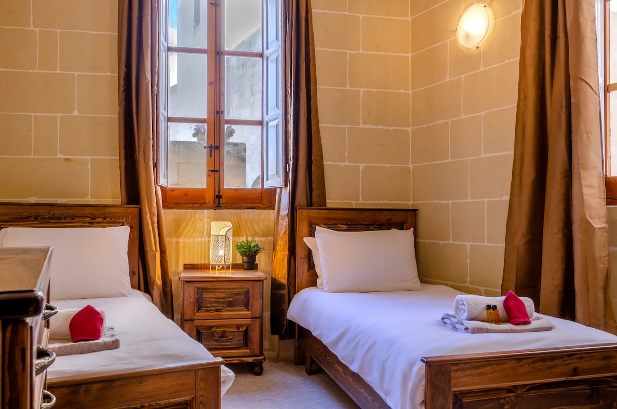 A beautifully renovated 130-year-old townhouse tucked into one of Victoria's most charming piazzettas. Step through the traditional Gozitan doorway into a cosy retreat where golden limestone walls meet modern comforts. Ideal for couples exploring Gozo, with the Citadel, Pjazza San Ġorġ, and the main bus station all within a five-minute walk. Free bicycles, Netflix on a large TV, and complimentary air conditioning are all included — everything you need for the perfect Mediterranean getaway.