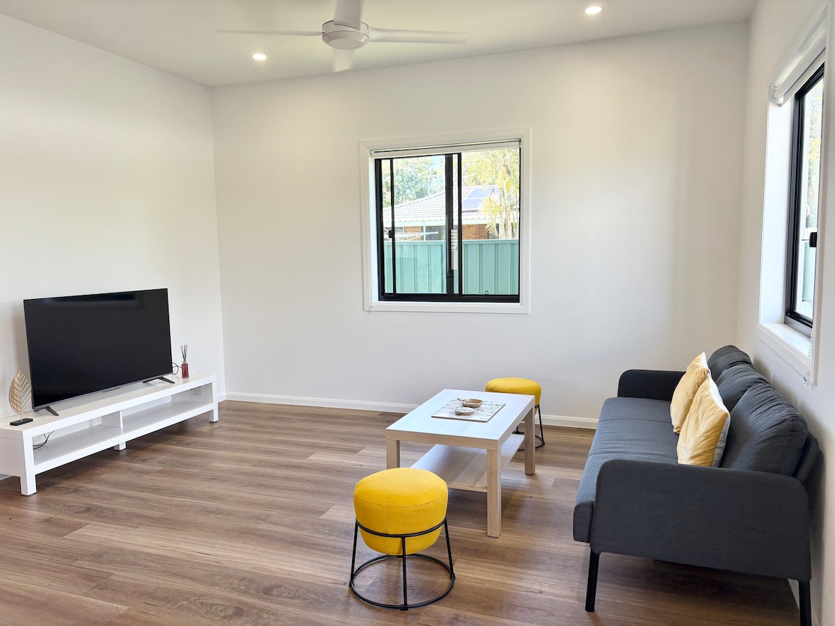Perfect for Long and short stays! Fully self contained, quiet tiny home with a comfortable ‘electric’ Queen bed to watch the 55” Big screen Smart TV with Netflix included, air conditioning, your own fully equipped private bathroom, (not shared) big shower, kitchenette with your own cooking facilities. Located in a very safe, quiet street just 400mtrs to Wellington Point village with amazing restaurants and all the shops you could need. Close to Stradbroke Island ferry and train station.