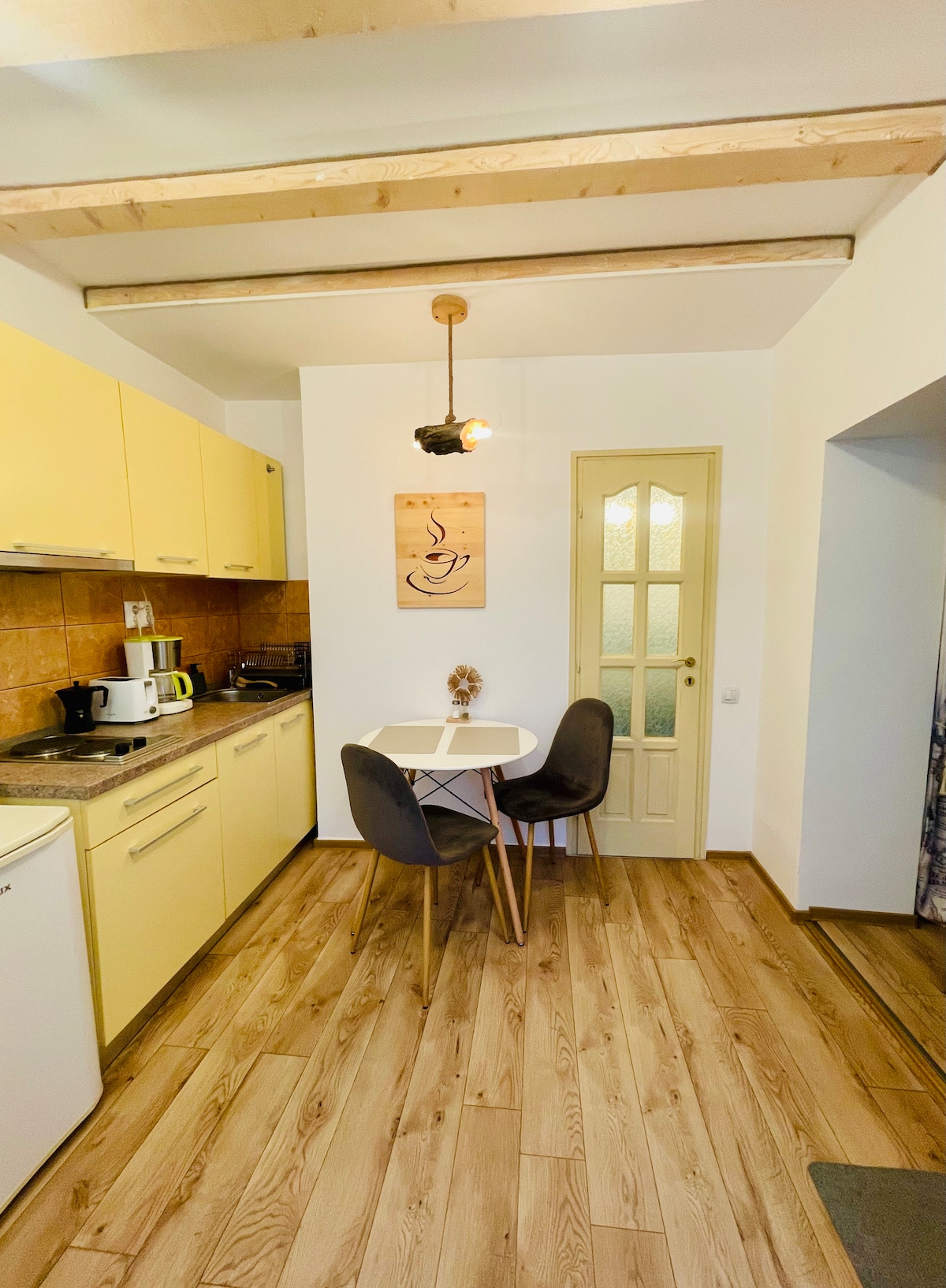 Our apartment is just steps from Piata Mare (Grand Square) in Sibiu. Located in a 200-year-old historic building, it features a cozy bedroom, living area with smart TV (Netflix), fast Wi-Fi, and a fully equipped kitchen with coffee maker, stove, and washing machine. Central heating keeps things warm in winter, and A/C is available during summer. A small private terrace adds extra charm—perfect for relaxing after a day of exploring the city.
