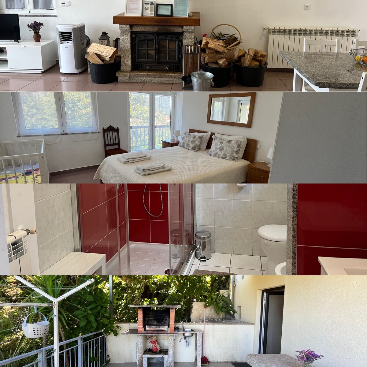 Lareira com lenha incluída e AR Condicionado. Este alojamento está numa das portas do Parque Nacional da Peneda Gerês, na encosta esquerda da Albufeira da Caniçada, próximo de praias fluviais, local ideal para visitar os locais turísticos no centro do Gerês, como cascatas, barragens, serras, lagoas, fazer caminhadas, miradouros,… Terraço com vistas rio, Está no 1° piso da moradia, tem 1 quarto com cama de casal (200/160) e 2 casas de banho com chuveiro. Um quarto pequeno para trabalho.