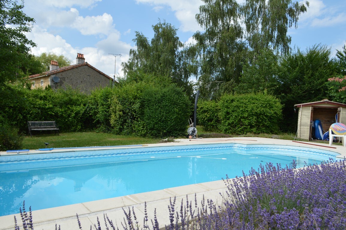 Dans un environnement protégé, vallonné et boisé de Charente Limousine, maison traditionnelle charentaise, entièrement restaurée, située dans un parc d'un hectare. Grande pièce familiale de 50m2. Grande terrasse en pierre ombragée par un pin parasol. Poêle à bois dans salon. Située en bordure de village avec accès direct aux chemins. Cadre idéal pour les sportifs et/ou les familles voulant profiter de la nature et des animaux : Chevaux, brebis, poules sont présents sur la propriété.