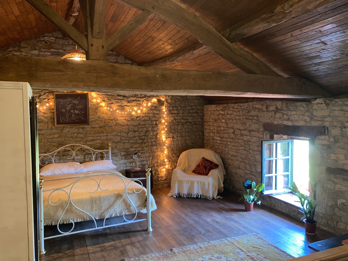 Stay in the old cowshed on our small farm, set in just under 2 hectares of pasture and woodland, full of wildlife. A great base for exploring Charente and all it has to offer. A rustic Gîte deep in the Charente countryside. Access to our homemade saltwater pool overlooking the valley during the summer months. Badminton/Volleyball and pickleball nets on site. Just 40 minutes from Angoulême. Less than 15 mins from Nanteuil-en-Vallée and Verteuil-sur-charente.