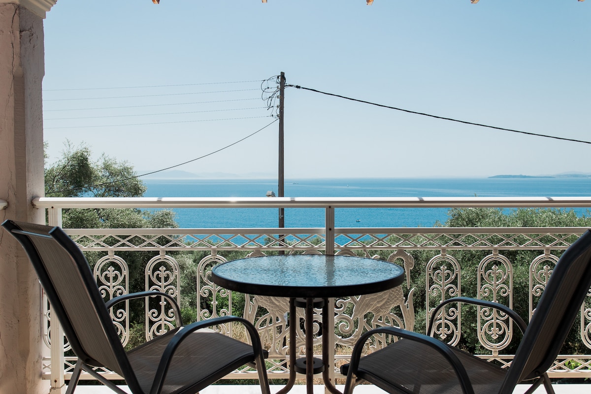 Apartmani sa pogledom na more imaju veličanstven pogled na more, to je idealna kuća za odmor za uživanje na zelenom ostrvu Krf. Smještaj za 2 osobe u klimatizovanom enterijeru, pogled na izlazak sunca nalazi se na panoramskoj lokaciji, samo 500 metara od prelijepog sela Barbati sa svojim prodavnicama, restoranima i fantastičnom kristalno čistom plažom. Ali sa nevjerovatnim pogledom na Jonsko more i planinu Pantokratoras koji će vas očarati svakog dana.
