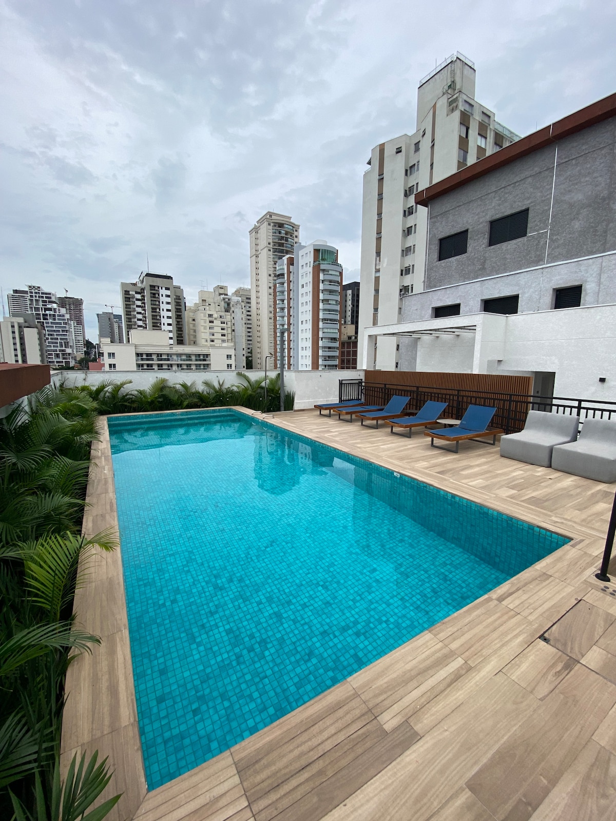 Studio You Faria Lima sa bazenom i praznim vozilom.