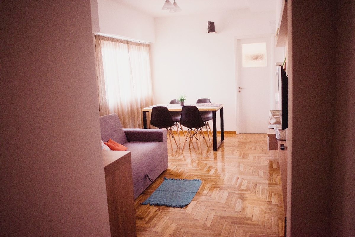 ​Vaš dom u B° Alberdi! Strateška lokacija na 2 minuta od tržnog centra Nuevocentro i na 5 minuta od centra automobilom. Idealno za 4 osobe (glavna soba + dvokrevetni kauč na razvlačenje + krevet za jednu osobu). ​🌟 Razlike: ​Prikladno za kućne ljubimce: Vaš ljubimac je dobrodošao, a za njega imamo tanjiriće! ​Suvi doručak: Sveobuhvatan paket za vaš dolazak. ​Udobnost: klima-uređaj, brz Wi-Fi, TV sa strimovanjem, kompletna kuhinja, posteljina i peškiri. ​Logistika: Opcija garaže i privatni transferi (pogledajte troškove). ​Pažljiv tretman i odlično čišćenje. Rezervišite odmah!