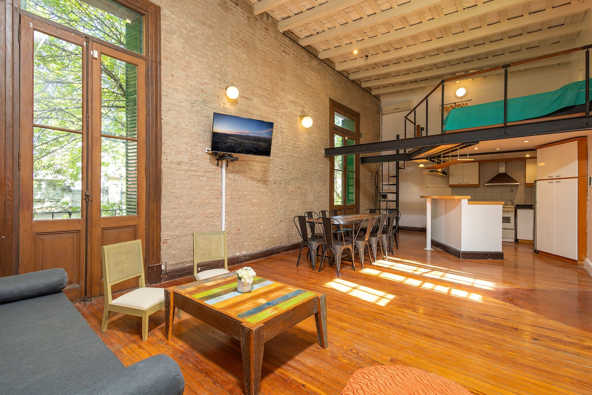 Odlično potkrovlje/studio u Palermo Sohou. Sa lepim dvorištem, roštiljem i radnim prostorom! Dva kupatila (jedno na spratu, a drugo dole), kuhinja. Spavaća soba je na spratu. Soba je veoma velika sa bračnim krevetom. Komšiluk je veoma miran, dva bloka od svih restorana, dizajnerskih prodavnica i kafića u Palermo Sohu, možete da idete bez problema peške. Vrlo bezbjedno područje :) Stan je veoma tiho, udobno i veoma lepo!!! Dobro došli :)