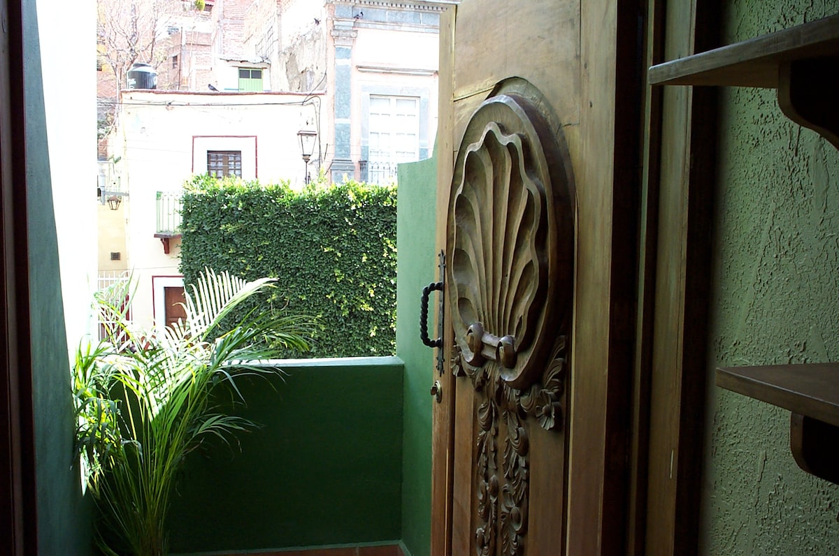 Ovaj studio apartman se nalazi na drugom spratu kuće u istorijskom centru grada. Ima direktan pristup šarmantnoj Plazuela de Mekijamora, tradicionalnom, pešačkom trgu sa klupama i fontanom oko koje se može provesti opuštajući se nekoliko trenutaka nakon posete drugim atrakcijama koje Guanajuato nudi. Ovo je jednosobni studio apartman opremljen bračnim krevetom, potpuno opremljenom čajnom kuhinjom, jednim kupatilom i izlazom na balkon s pogledom na Plazuela de Mexiamora. Obezbeđeni su Plazma TV, usluga satelitske televizije, internet Wi-Fi. Pristup studiju je kroz lijepe spiralne stepenice. Uz dozvolu vlasnika može se koristiti velika terasa s panoramskim pogledom na grad. U neposrednoj blizini (u krugu od 600 stopa) pronaći ćete poznata mjesta kao što su tri Teatrosa (Huarez, Principal i Cervantes), Univerzitet u Gvanahuatu i glavni gradski trg, Jardin de la Union, gdje možete uživati u muzici bendova, marijačija i kafe i pustinje iz različitih lokalnih preduzeća, ako to želite! Iskreno vjerujemo da ovaj studio nudi jednu od najboljih lokacija u gradu, jer je tako blizu svih glavnih atrakcija, miran i lako dostupan Uz malu dodatnu naknadu možemo da vas pokupimo na stanici gradskog autobusa ili na aerodromu León Internationl.