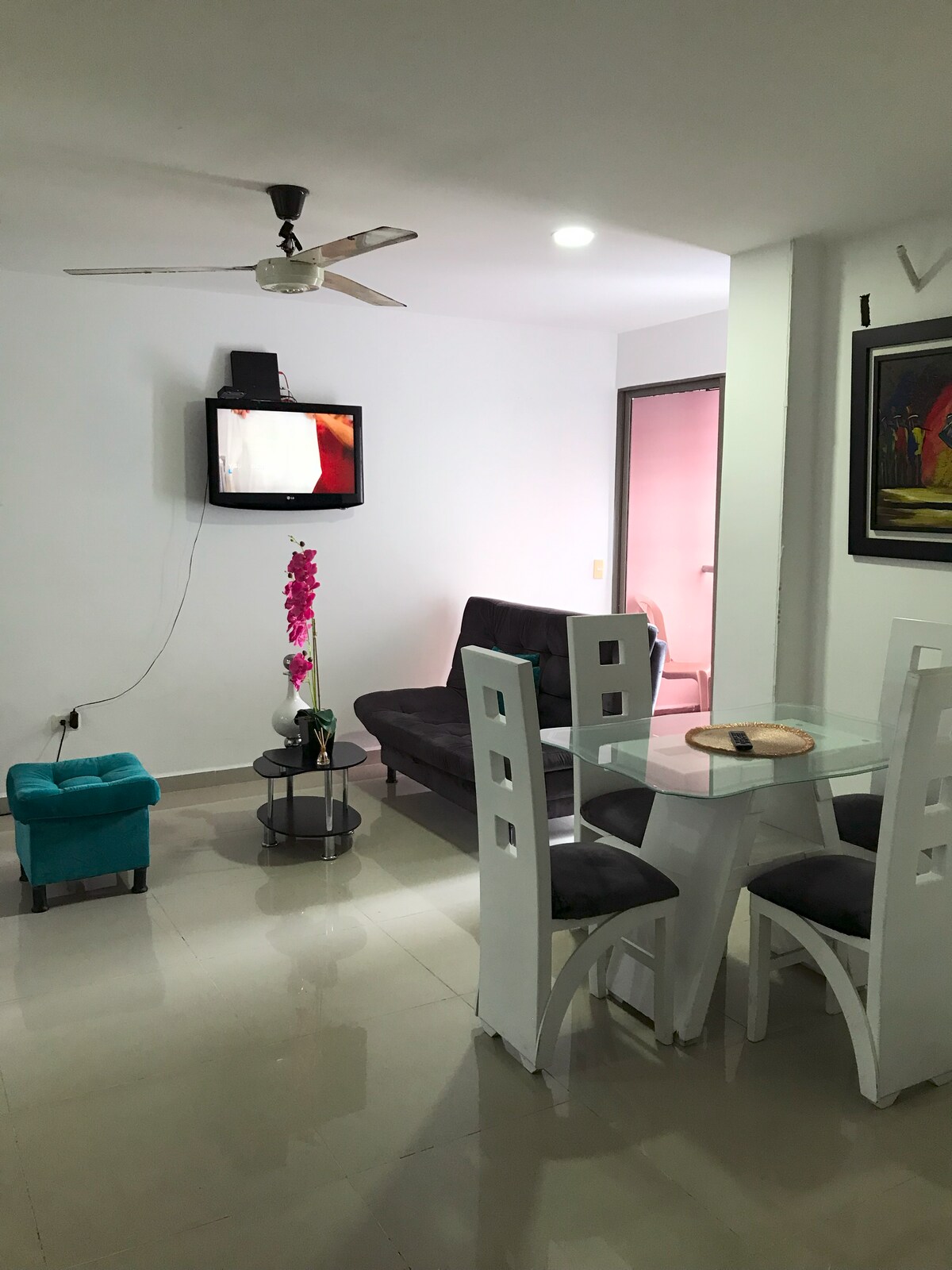 Prekrasan stan u Barrancabermeji, nalazi se u centralnom dijelu grada, 4 bloka od tržnog centra San Silvestre. Odlično za porodice Ima dvije sobe (1 Hab sa 1 bračnim krevetom i pomoćnim krevetom, privatno kupatilo i klima-uređaj) (Još jedna soba sa 2 kreveta i ventilatorom) Kauč na razvlačenje, TV od 60 ". Takođe opremljena kuhinja, pomoćno kupatilo, frižider, mašina za veš i balkon. Opcija parkiranja uz dodatnu cenu u 24-časovnom javnom parku, udaljenom jednu ulicu.