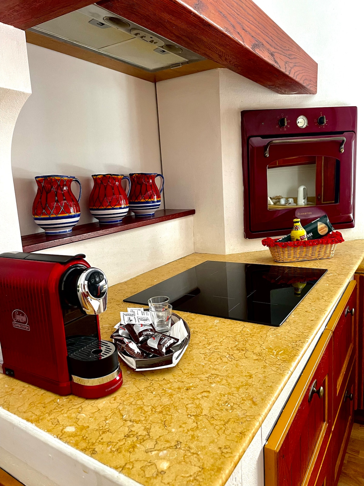 Veliki stan (oko 200 kvadratnih metara) sa finom završnom obradom ima tri velike i elegantne spavaće sobe sa privatnim kupatilom, kuhinju sa indukcionim šporetom, trpezariju, dnevni boravak, terasu. Ima ukrašeni pod, zidove sa originalnim kamenim delovima, klasični dekor sa komadima antikviteta. Nalazi se u drevnoj zgradi s pogledom na karakteristično stepenište u srcu centra grada, nekoliko koraka od ulice Via Atenea, najlepše i elegantne ulice u gradu.