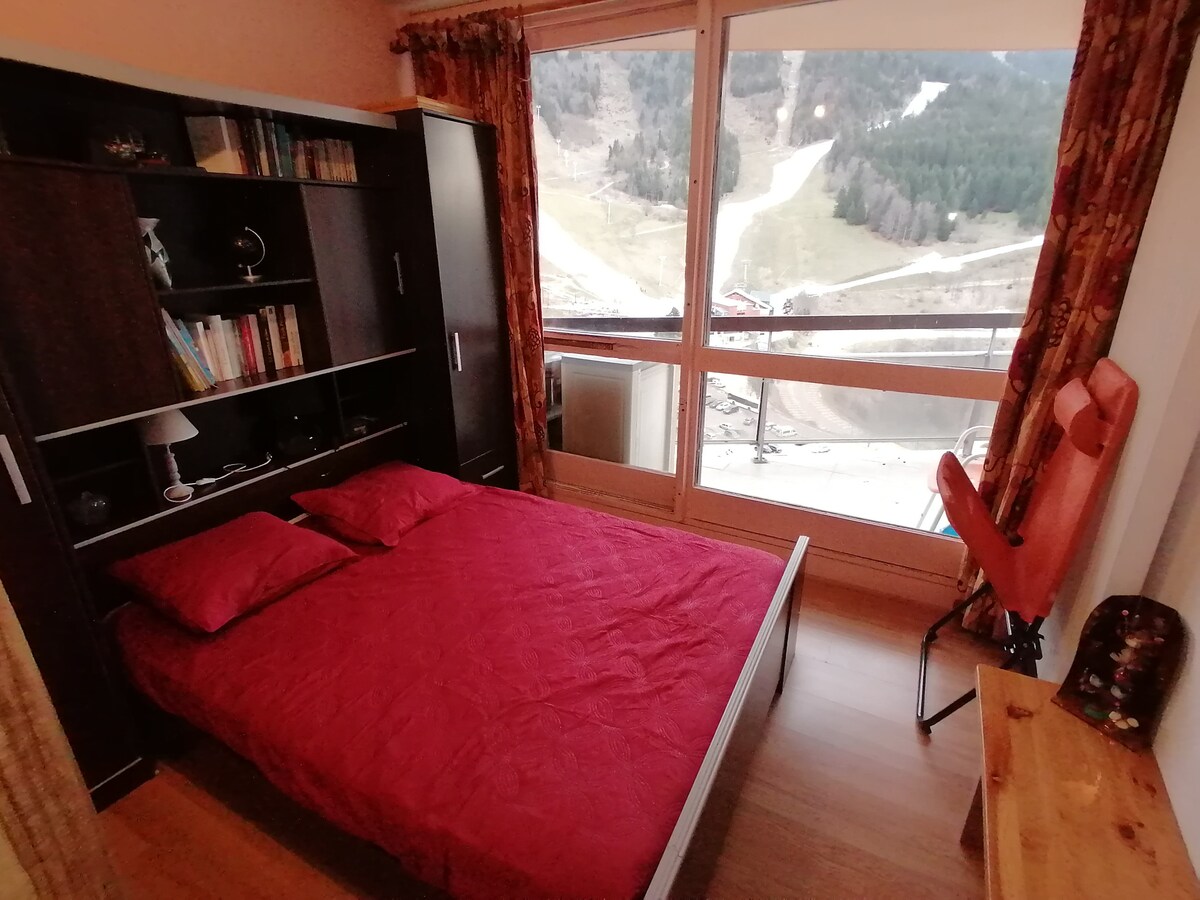 Stan u maloj, veoma mirnoj rezidenciji. Odlični sadržaji, atmosfera planinske kuće. 1 spavaća soba sa 1 krevetom 140, kliknite na dnevnu sobu. Kupatilo sa tuš kabinom. Mašina za pranje veša i sudova. Vrlo sunčana terasa gde možete da imate prijatan ručak. Garaža sa liftom. Nalazi se u centru sela, 300 m od besplatnog prevoza za spust i skijaško trčanje. Svi sadržaji su u blizini (prodavnice, bioskop, klizalište, restorani...)