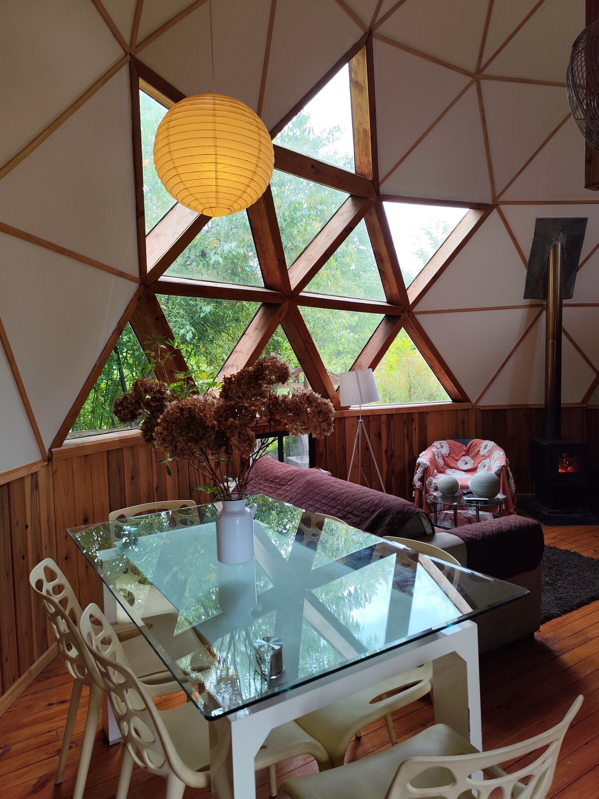 Utočište mira usred šume Zamislite da se probudite uz blagi šum vjetra među drvećem, udišete čist vazduh i osjetite spokoj prirode oko sebe. Naša udobna kupola, okružena malom autohtonom šumom, savršeno je mjesto da se odvojite od svijeta i nađete se, ima dva kreveta, opremljenu kuhinju, terasu i privatni parking. Ovo sklonište vam pruža priliku da pauzirate rutinu, duboko udahnete i jednostavno budete.
