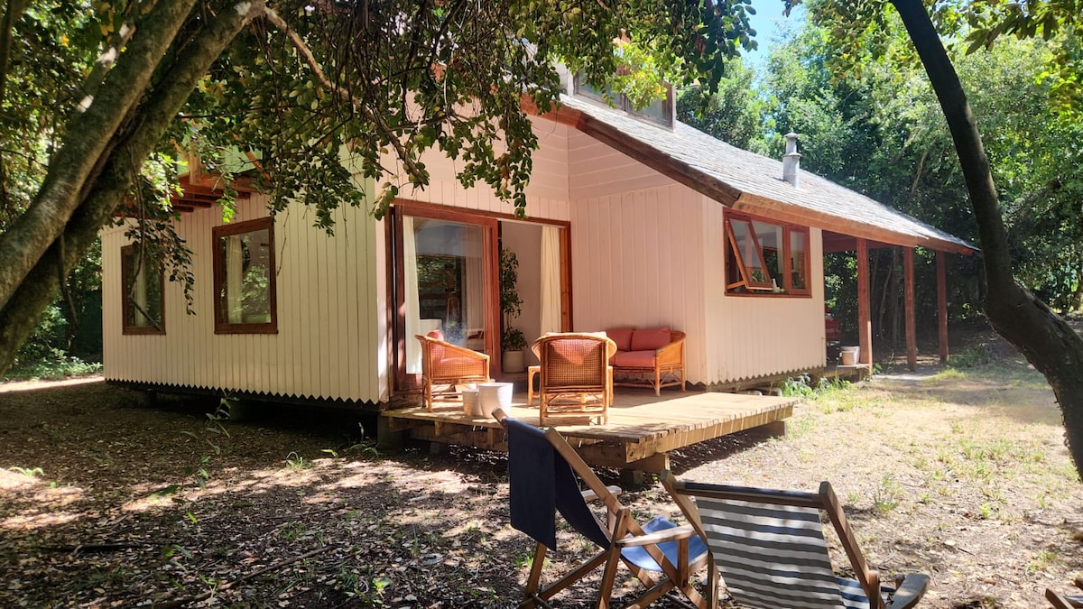 Uživajte u prirodnom utočištu sa tinajom i iznad reke u Pukonu. Okružena autohtonim šumama, ova brvnara nudi odmor i privatnost. Sa terase možete da čujete reku i pevanje ptica. 📍 5 minuta od plaže i 4,5 km od centra grada. 🏡 Opremljeno minibarom, električnom rernom, priborom, toplom vodom i peći na drva. 💦 Hidromasažna kada uz dodatni trošak od 50.000 USD po korišćenju. ------- Tinaha, đakuzi, brvnara, šuma, reka, Pukon, plaža, par, priroda.