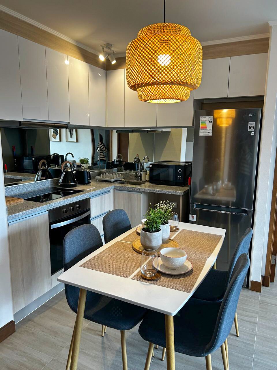 Apartment up to 6 pax (3 bedrooms/2 bathrooms), enjoy the weekend with our lake view terrace, ideal as a ski shelter or home office in a peaceful and natural environment. Condominium features are; beautiful gardens for walks, swimming pool, game room, children's playground and BBQ area. Close to town but faraway from noise. only 2 km away that makes access easy to Pucón's shops, entertainment, and local culture. Heated by a central boiler and with a high-speed fiber optic internet.