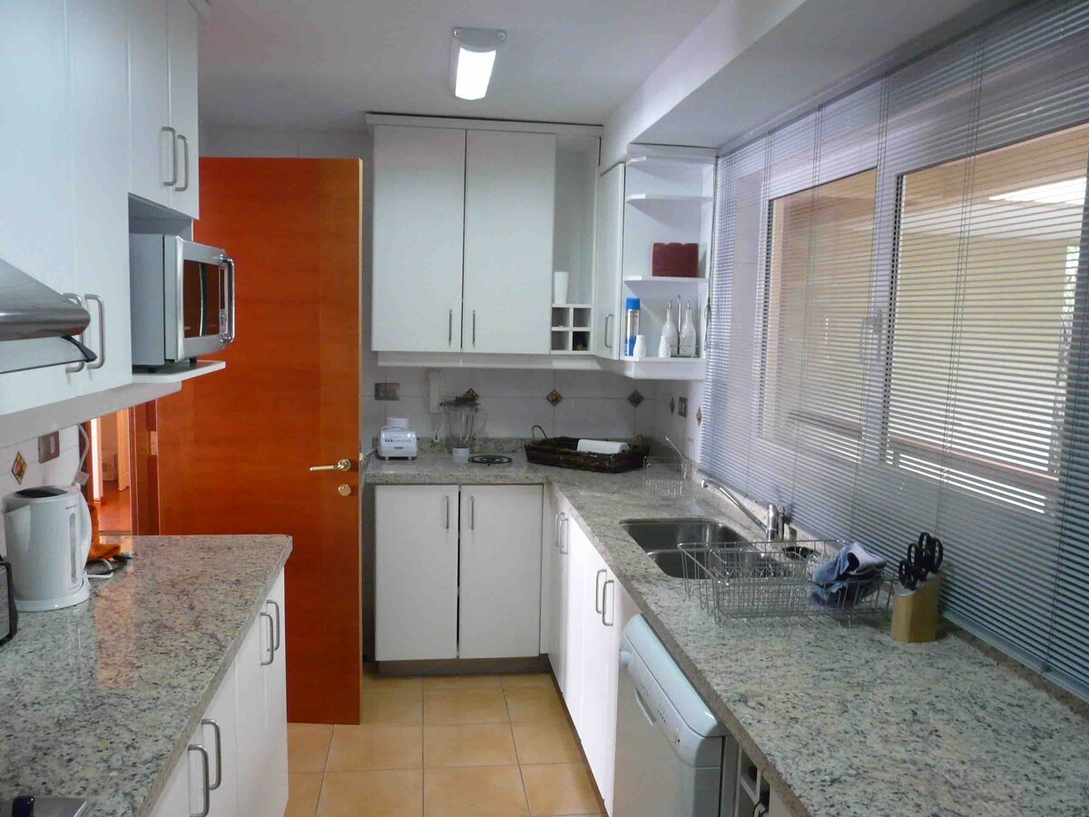 Elegante departamento completamente equipado, con 3 dormitorios, principal en suite, 2 baños, terraza con quincho, parrilla, WiFi, 2 smartTV, cafetera nespresso, estacionamiento techado, piscina cercano a centro de Ski.