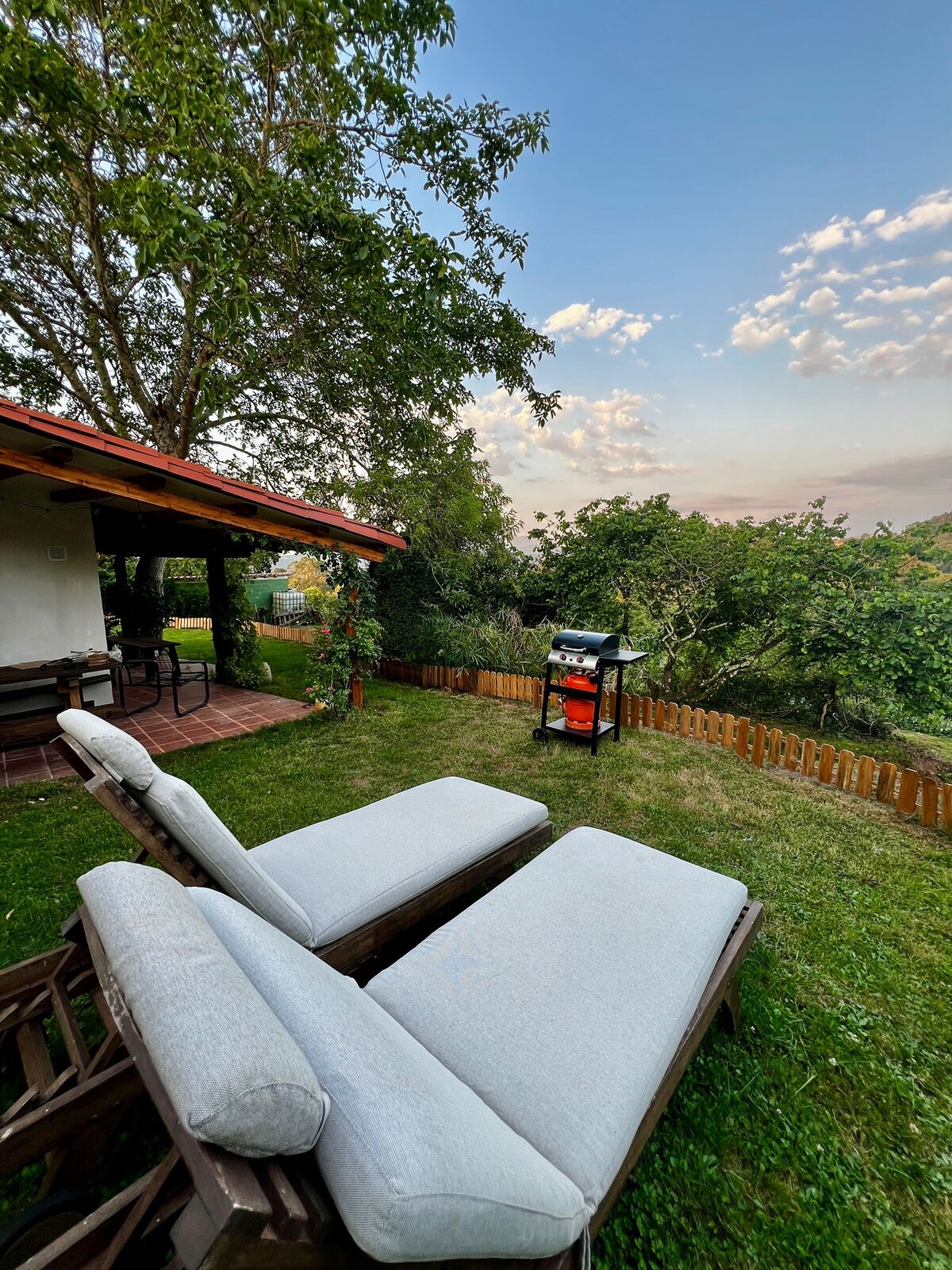 Casa Perfeta . Jardín con Barbacoa en la Montaña