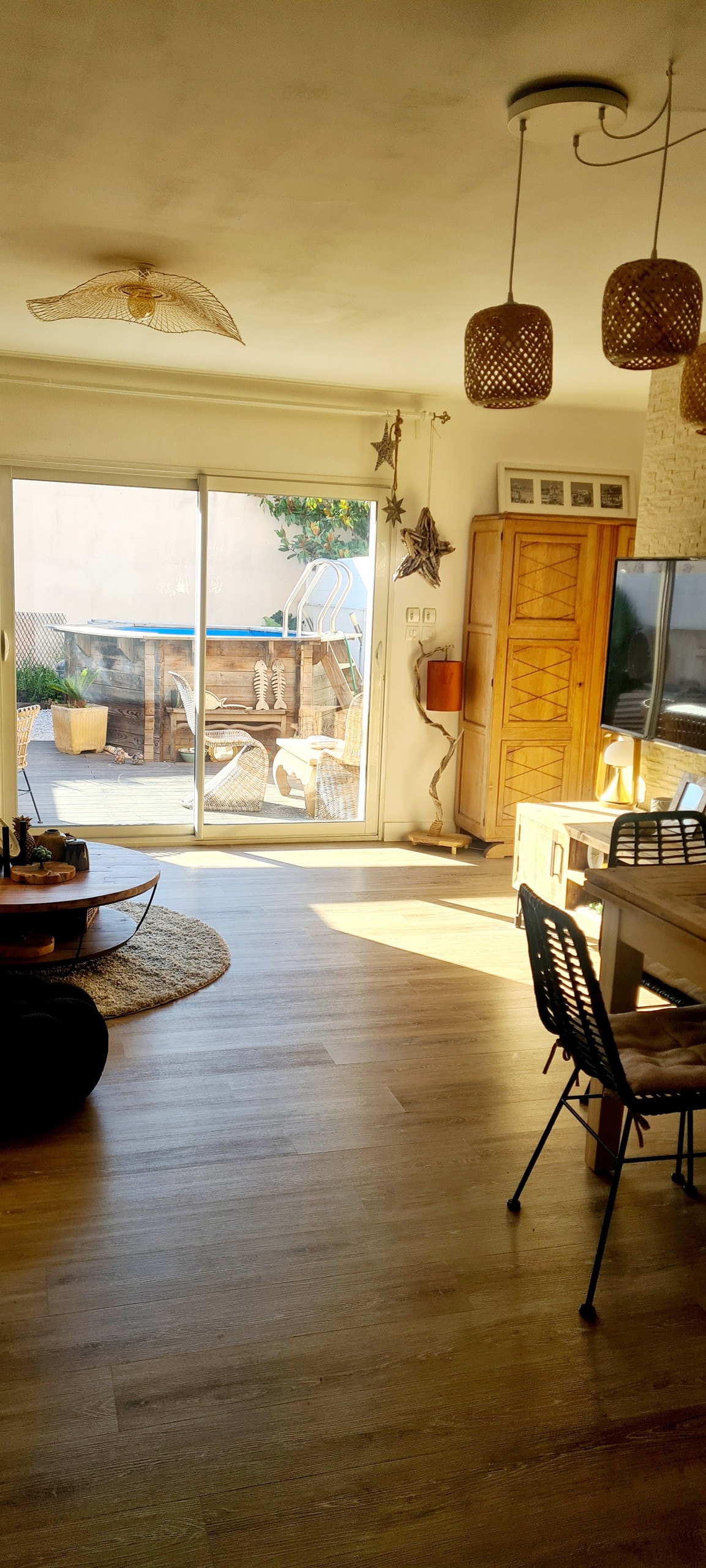 Profitez en famille de cette charmante maisonette avec grande terrasse pour profiter de l ' extérieur et place de parking qui se trouve dans un quartier très calme pas loin de la plage joignable à vélo ou en voiture. Les salines sont à 5 minutes à pied , des paysages magnifiques. Le village est à côté avec tous ses commerces et ses restaurants et Montpellier est joignable en 15 minutes en voiture. Le logement est équipé également d'un cellier pour y déposer vélos, matériel de plage, et autre.