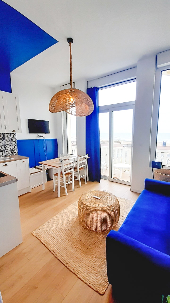 Lijep studio u potpunosti preuređen sa neometanim pogledom na more, gdje možete čuti zvuk talasa. ☀️🌊 Smješteni u veoma mirnoj ulici u centru grada u podnožju plaže, spustite torbe i možete uživati u mnogim prodavnicama pješke: pekara, restoran, bar, zanatska prodavnica sladoleda, Carrefour City, pijaca, Kazino,... Naći ćete na ulicama oko besplatnih parking mjesta (neka se plaćaju u zavisnosti od perioda). Ulaz i izlaz su samostalna prijava.