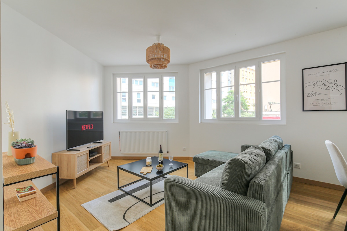 ✨Dođite i uživajte u elegantnom i centralnom smještaju od 45 m2 koji se idealno nalazi 1 minut hoda od stanice metroa Skyscraper ✨ Ovaj renovirani i potpuno opremljen stan će vas zavesti. U blizini stanice metroa do La Part Dieu za 20 milja, Bellecour za 15 minuta, stadion Groupama za 20 minuta i manje od 30 minuta od aerodroma sa direktnim prevozom! Opuštajuća atmosfera sa Netflix-om za udoban boravak, to je obećanje koje vam dajemo!