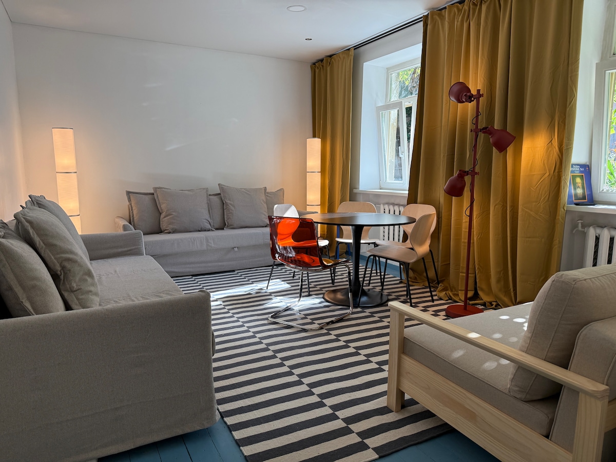 Cozy Maritime-Inspired Studio in Vilnius—Free Parking, Netflix, and Charm Welcome to your charming maritime-inspired studio—a unique retreat in a beautifully restored 1909 home. This cozy space, ideal for couples, small families, or solo adventurers, it combines vintage charm with modern-day comforts. Located near Vilnius’ largest green space, Vingis Park, and a short walk to the heart of the UNESCO-listed Vilnius Old Town, it’s the ideal base to explore the city.