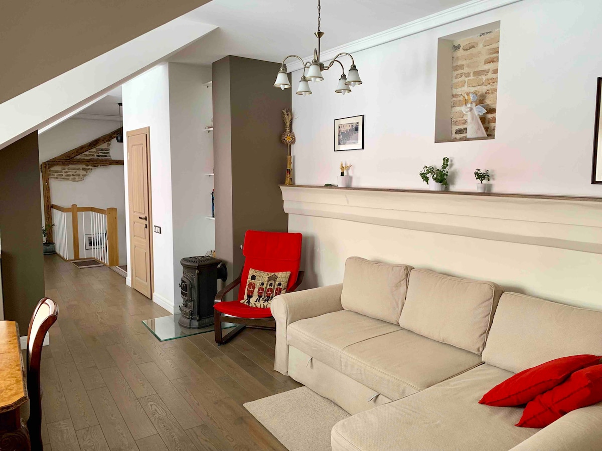 Uđite u svoj novouređeni, prostrani stan koji se nalazi u živopisnom jezgru gradskog centra, savršen za parove, poslovna putovanja ili porodice koje traže avanturu u istorijskom Starom gradu Vaš drugi dom je topao, svijetao i prepun sadržaja za besprekoran i udoban boravak. 📍 Najbolja lokacija Atrakcije: 2 min. do Avenije Gediminas 10 minuta do katedrale 🌃 Bezbedan, dobro osvetljen i živahan deo grada Svijetla, udobna kuća 🚀 Brzi WiFi (100 MB/s) Kablovska TV 🚗 Besplatan parking (na zahtjev) Vaša avantura u Vilnjusu počinje ovdje!
