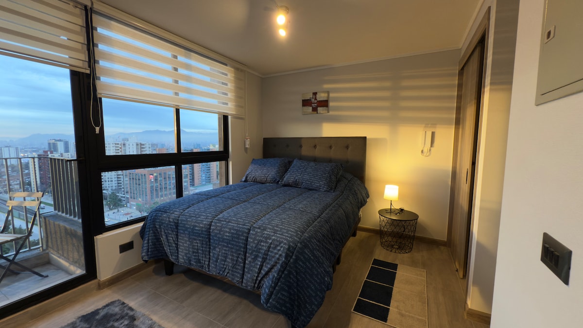 Uživajte, opustite se i upoznajte Santijago. Novi, potpuno opremljeni apartman koji se nalazi u stambenom području 7 minuta od metroa i 1 blok od Nacionalnog stadiona. Ima 1 spavaću sobu i 1 kupatilo, klima-uređaj, prostor za rekreaciju za decu, privatni parking i obezbeđenje 24/7; idealno za porodice, bračne parove, parove, prijatelje i avanturiste. Daleko od buke i nekoliko metara od Nacionalnog stadiona.