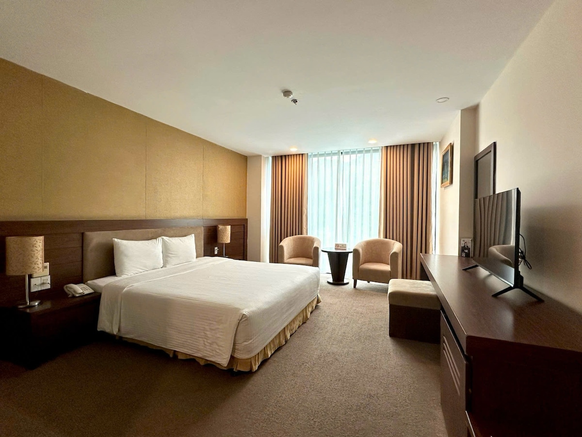 Naše Deluxe sobe s bračnim krevetom i pogledom na more imaju bračne krevete i nude vrhunsku udobnost i opuštanje. Prag NhaTrang je šarmantan i savremeni hotel koji se nalazi u živopisnom primorskom gradu NhaTrang u Vijetnamu. Poznat po svojim zadivljujućim plažama i bogatoj kulturi, NhaTrang je popularno odredište i za odmor i za poslovne putnike. Hotel nudi idealan spoj udobnosti, praktičnosti i odlične usluge, što ga čini vrhunskim izborom za posjetioce ovog područja