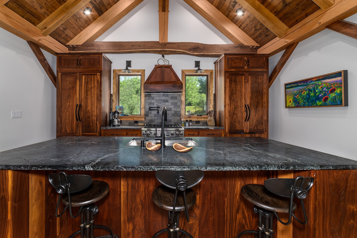 Welcome to The Maury River Treehouse. This luxury timber frame cabin sits on the banks of the Maury River. The Treehouse was built almost entirely by local craftsmen making it a true showstopper! Located 9 miles from Lexington, Washington & Lee and Virginia Military Institute. It's a fisherman's dream, paddlers paradise or just a relaxing retreat! The true timber frame construction, stone fireplace, gourmet kitchen and park like setting will take your breath away!!