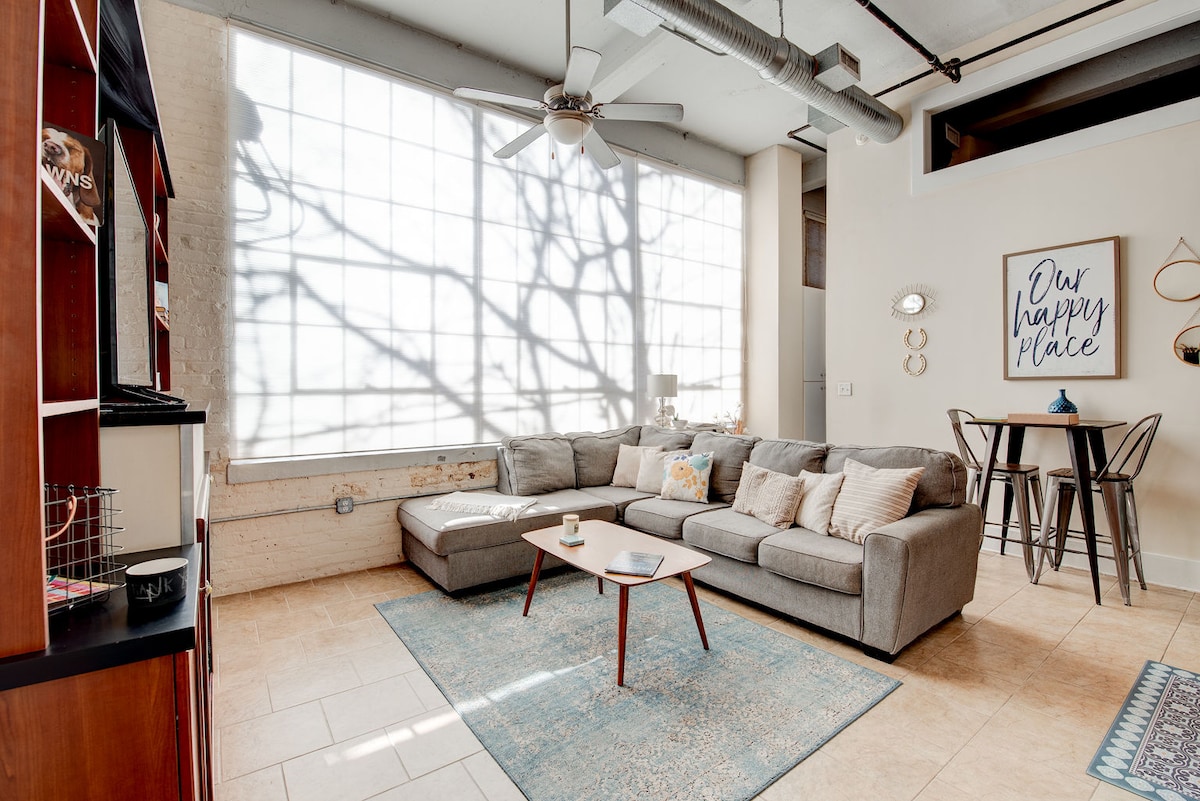 Osvijetlite vatru i odmorite se na ogromnom sekcijskom kauču u preuređenom enterijeru masivnih prozora i visokih plafona. Elementi u industrijskom stilu doprinose autentičnosti, dok nove karakteristike uključuju kupatilo sa mermernim radnim površinama. Samo izađite na vrata da biste došli u Aveniju Monument, dok su restorani, pivovare i butici u Scotts addition i Fan Carytown u neposrednoj blizini. Pored toga, GRTC Pulse blok dalje nudi lakši pristup dalje.