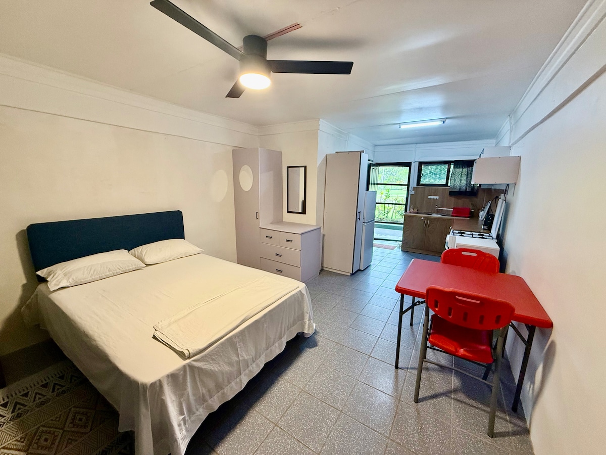 Located in a serene environment with a nature view in Davuilevu, just 5 minutes drive away from shopping mall (supermarkets, Burger King, Restaurants, ATM etc), police station, pharmacy, clinics and 16 minutes drive from Suva International Airport. The guests will have the whole flat to themselves. Own kitchen, bedrooms, bathroom and facilities. No sharing. Enjoy your two-bedroom flat, adequately furnished to be your little home away from home.