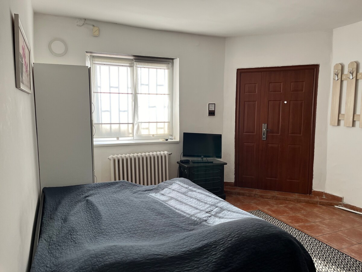 U mirnom dvoristu u samom centru grada . Jednosoban aparman sa svim potrebnim stvarima za kraci ili duzi boravak. Prednost je lokacija , blizina svim gradskih prevoza i transvera do aerodroma. U blizini kulturno istoriskih desavanja .