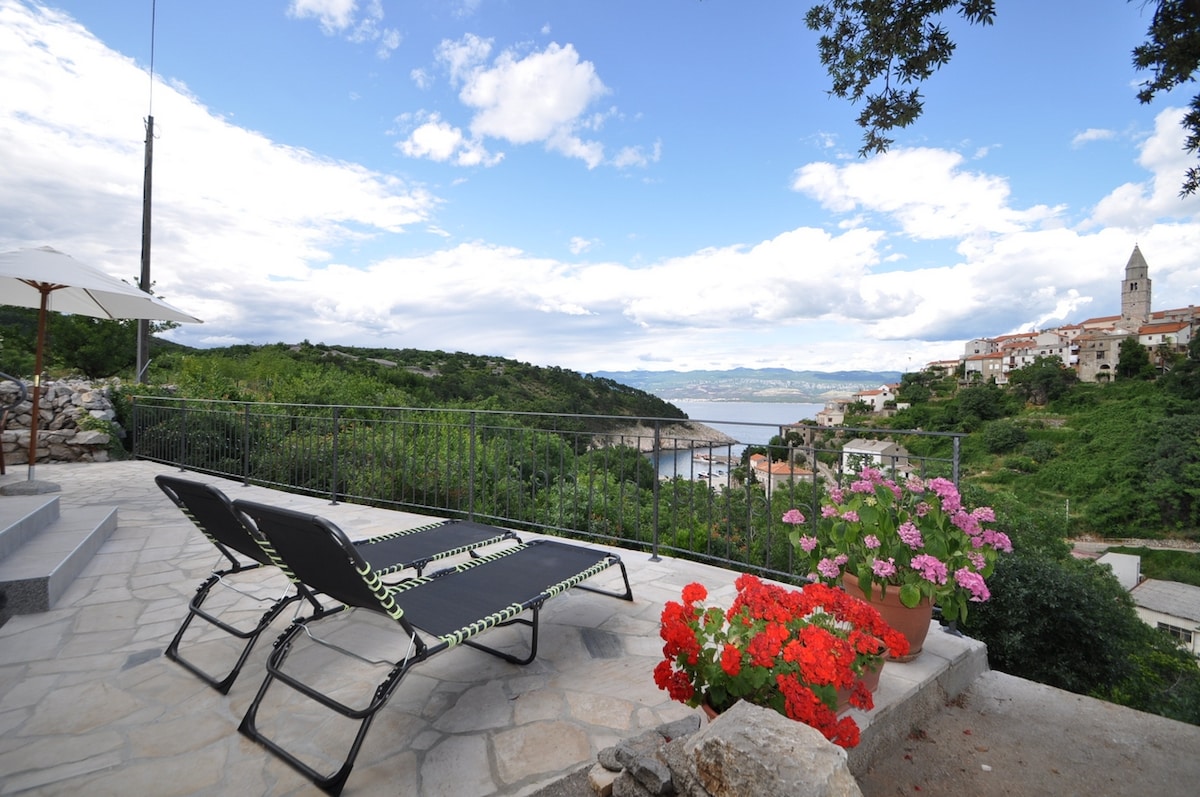 Lijepa mirna lokacija s pogledom na more i stari grad Vrbnik čine ovaj apartman idealnim za romantičan odmor. Možete uživati na vlastitoj terasi s pogledom na more i stari grad. Apartman se nalazi u prizemlju obiteljske kuće. Gostima su na raspolaganju WiFi i klima, kao i jedno parkirno mjesto pokraj kuće.