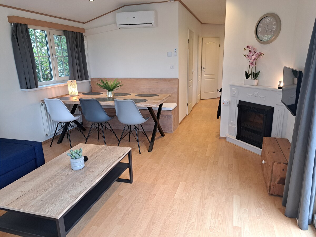 Doživite sjajan odmor u ovoj udobnoj i moderno namještenoj kući za odmor sa privatnim spoljnim bazenom (grijanim april-oktobarom) i natkrivenom baštenskom terasom sa roštiljem na plin, na bašti omeđenoj živicom. Smještena u mirnom parku za odmor, samostojeća kuća nudi mnogo udobnosti. Veliki dnevni boravak i trpezarija sa kuhinjom i WC šoljom u prizemlju i 2 spavaće sobe sa ukupno 6 kreveta, kao i kupatilo sa hidromasažnom kadom + tuš na 1. spratu. Posteljina i peškiri su uključeni.