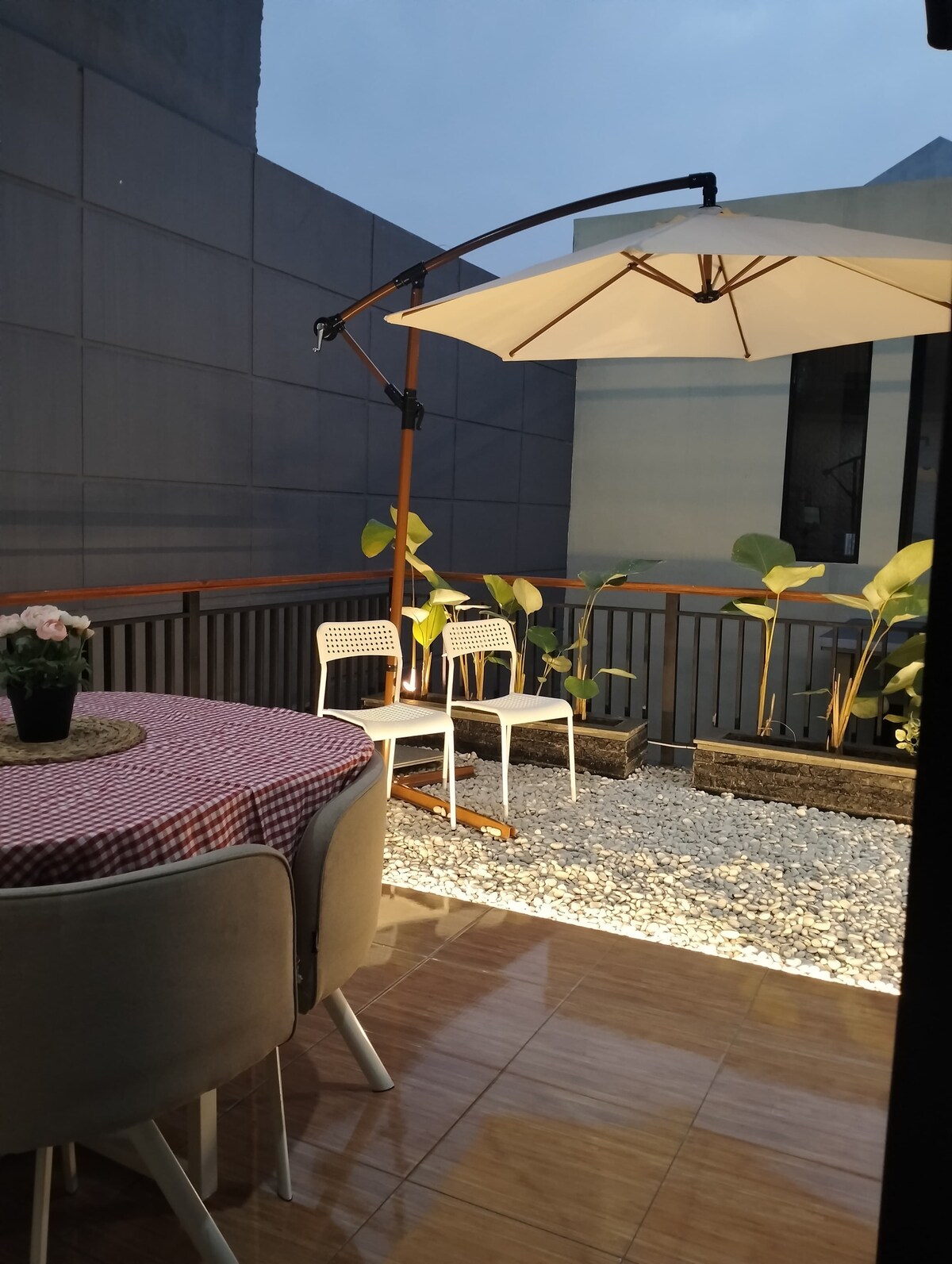 Welcome to our cozy, sharia-compliant home in Kota Baru Parahyangan, Bandung! Our house offers 3 air-conditioned bedrooms, 2 bathrooms, and a fully equipped kitchen. Enjoy smart TVs with Netflix in the master bedroom and living room. Relax on the terrace, adjacent to a playground and basketball court. We are close to IKEA, Wahoo Waterpark, Bumi Hejo culinary area, and the Woosh high-speed train station. Family or couples must present a marriage certificate or ID.