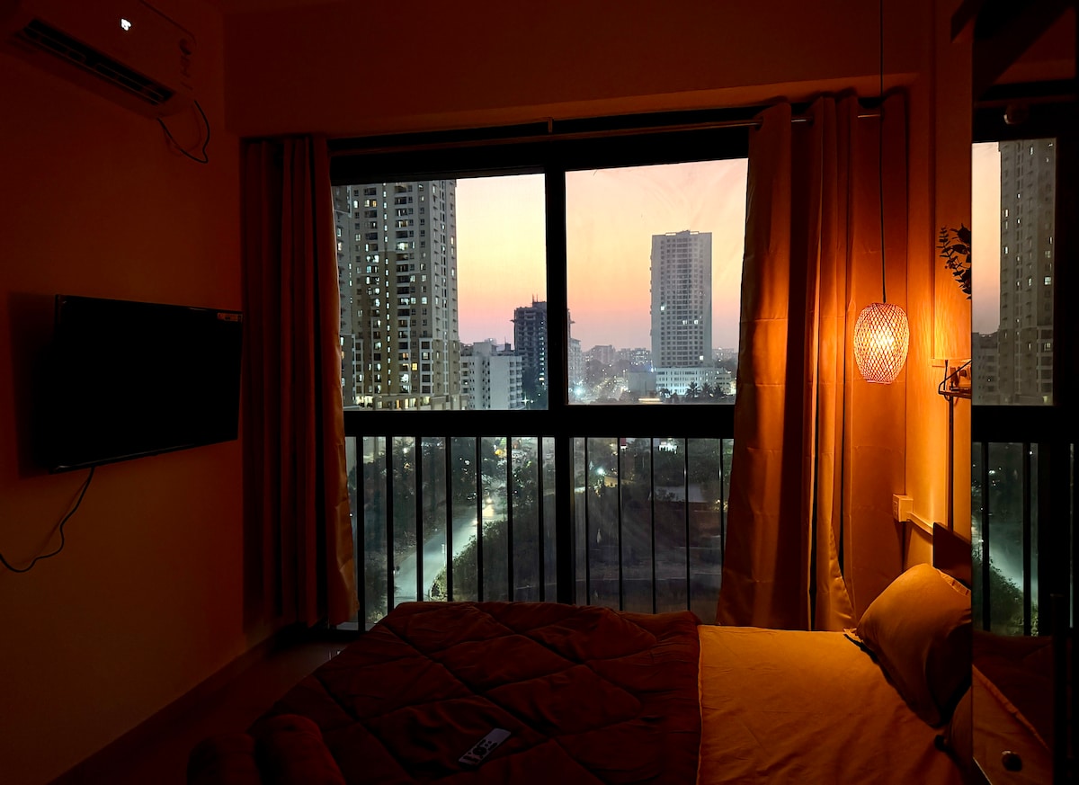 - Potpuno opremljen, potpuno privatni 1 BHK u Puni (blizu tornjeva Panchshil, Kharadi) - Funkcionalna kuhinja sa osnovnim priborom za kuvanje kod kuće - Domaći obroci, sveže pripremljeni u našoj kuhinji (dostupno) - Brzi Wi-Fi od 100 Mbps sa UPS napajanjem - Posebni čuvar u sklopu objekta za pomoć - Jednostavan pristup Swiggy, Zomato, Blinkit, Ola i Uber - Besplatno svakodnevno čišćenje od strane našeg obučenog tima za čišćenje - Otprilike 30 minuta od aerodroma Pune - Bez kućnih ljubimaca i zabava