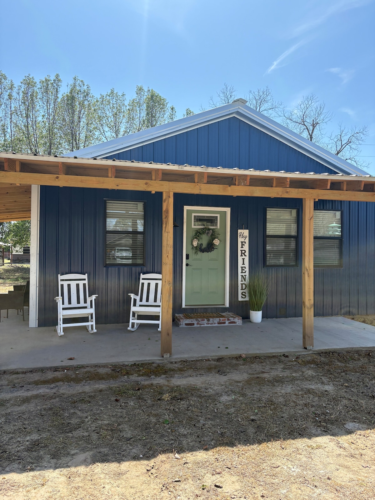 Get away from it all when you stay under the stars. 10 acres with a cute tiny home! There’s a fire pit in the back to enjoy under beautiful string lights. This tiny home has a rustic feel and 10 acres to enjoy. Bring your fishing pole and bait to fish but please catch and release.