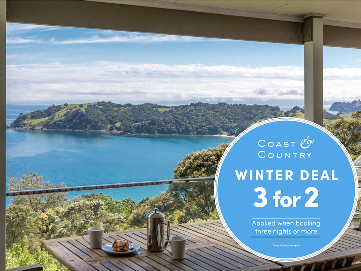 Uživaćete u zapanjujućem pogledu na more i ostrvo, iz ovog besprekornog luksuznog 2 kreveta, 2 kupatila, samo za vas. Uređenje doma je francuska provincija , ima dve spavaće sobe, jedna sa bračnim krevetom, a druga sa super Kingom koji se po potrebi može podeliti na dva singla, od kojih svaka ima svoj lični apartman Sunčani otvoreni život sa kuhinjom i privatnim, sunčanim unutrašnjim spoljašnjim palubama i pogledom na more na ostrvu. Ne nalazimo se na ostrvu Vaiheke