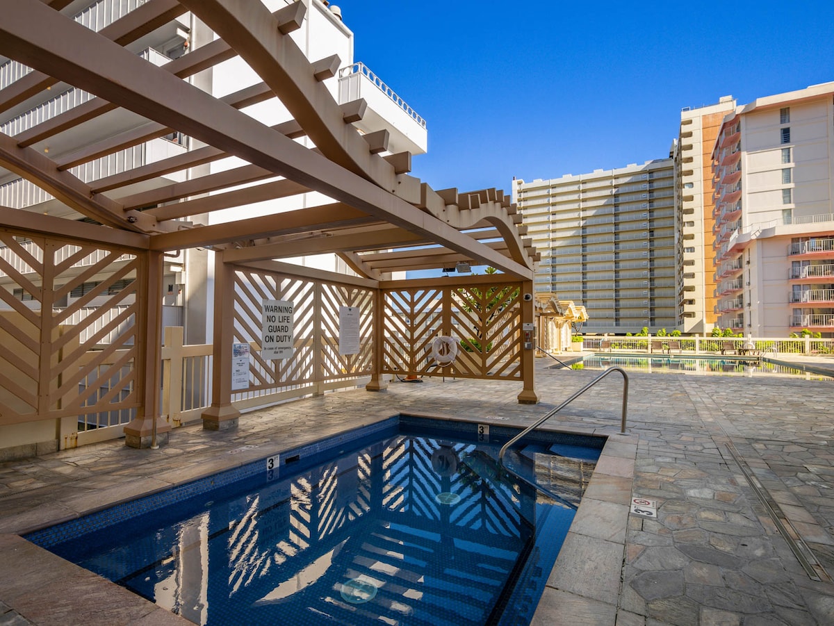 Charming studio located in the Heart of Waikiki. Wake up and watch Waikiki come alive on your private lanai. You are just 2 blocks away from the beach and steps from world class shopping, dining, and entertainment. *NOTICE* The hotel is currently modernizing its two elevators, with the project expected to continue through April 2026. During this time, one elevator will remain available for guest use at all times. We apologize for the inconvenience and thank you for your patience.