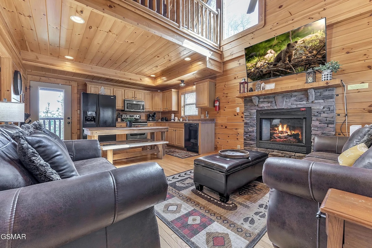 ✅Masažna kada ✅Pogled na planine ✅Ognjište (uz propan) ✅Električni kamin ✅Mokra soba (velika kada i tuš-kada) ✅Blackstone Grill (uz propan) ✅Veliki natkriveni trijem sa trpezarijom na otvorenom ✅Potpuno nova moderna brvnara (600 kvadratnih stopa) ✅ Privatna ograđena zajednica/bezbjednost Bazen u✅ zajednici (sezonski), teniski tereni, Pickleball teren i igralište! ✅1 spavaća soba (bračni krevet)/1 kupatilo sa sofom (bračni krevet (širine 150-179 cm)) Mašina za✅ pranje/sušenje veša, mašina za sudove, rerna i frižider! ✅Starinske društvene igre Daske ✅za kukuruzne rupe ✅ Gramofon