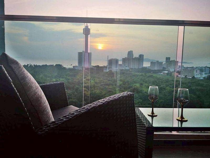 Visoki sprat (22. sprat)- luksuzni stan u srcu Pataje, udaljen samo jedan blok od plaže. Bračni krevet (širine 150-179 cm). Prostor za rad. Brzi WI-FI u sobi i stanu. Uživajte u udobnosti u udobnom prostoru sa prelepim pogledom na zaliv. Stan nudi aparat za kafu, mašinu za pranje veša, radni prostor i sav pribor za kuvanje. Sef je dostupan. HD kablovska TV i identifikacioni dokument su dostupni u spavaćoj sobi. Uživajte u bazenu, sauni, đakuziju i parnom kupatilu. U kondominiju je na raspolaganju fitnes centar.