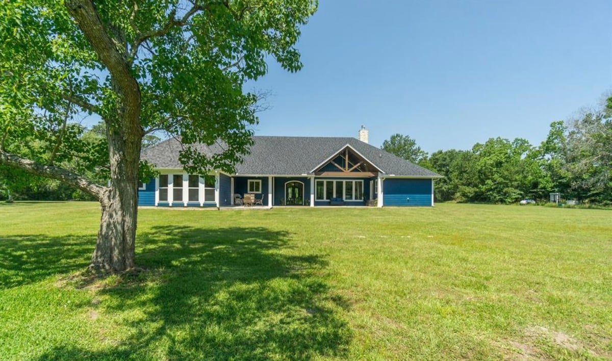 Dobro došli u naš raj smješten na 70 hektara netaknutog ranča! Pobjegnite od gužve i vreve gradskog života , 30 kilometara od Hjustona i doživite spokoj našeg skrovitog utočišta. Dok se vozite makadamom, veličanstveno visoko drveće i prostrana polja dočekuju vas u vašoj privatnoj oazi. Naša kuća na ranču, sa svojim šarmantnim rustikalnim eksterijerom i modernim sadržajima, služi kao savršen dom za vaš odmor.