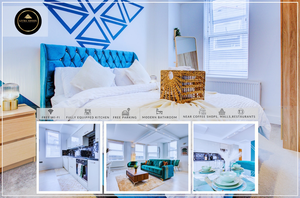 🌐 Livra Estate Short Lets & Serviced Accommodation Sutton 🌐 🏠 The Leaf - Stylish and Stunning 1-Bedroom Apartment in Heart of Sutton 🗝 Sleeps Up to 3 Guests 🗝 Bedroom 1 - 1 Super King Bed 🗝 Living Room - 1 Sofa Bed 🗝 Free Wi-Fi 🗝 Free Private Parking On Site 🗝 Located on 1st, Second and 3rd floor (no lift). Ideal for: ➞ Professionals ➞ Couples ➞ Leisure travellers ➞ Business travellers ➞ Short-term stays