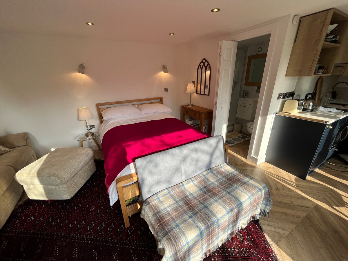 Ovaj potpuno namješten, renoviran prostor - studio apartman smješten je u slijepoj ulici koji je razvio poznati Free Mantle. Nudi svijetli otvoreni dnevni prostor, čajnu kuhinju sa aparatima. En-suite je završen u skladu sa najvišim standardima sa sadržajima. Uživajte u gledanju Netflix-a, YouTube-a i opštih stanica na impresivnom 65-inčnom pametnom televizoru. Super brzi širokopojasni internet. Ako vam zatreba pomoć tokom boravka, vaši domaćini su odmah pored i rado će vam pomoći.