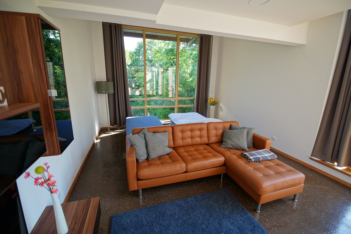 Dich erwartet ein eigener, abgeschlossener Bereich, welchen du durch ein dazu gehöriges Treppenhaus erreichst. In unserem kleinen "Sweet Home" befindet sich ein Schlafzimmer mit TV, WLAN, Sessel und einem Regal (Kleideraufbewahrung).Von hier aus kannst du die getrennt liegende Dusche begehen. Der Waschbereich und die Toilette sind separat.(In diesem Raum beträgt die Deckenhöhe nur 2m) Zu unserem Sweet Home gehört zu dem eine kleine Sitz-Ecke mit Kaffee/Teebar und ein Flur mit Garderobe.