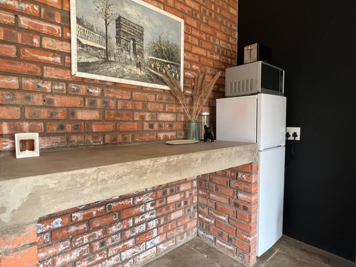 Moderan jednosoban stan u Karters Glenu - idealan za poslovna putovanja ili razonodu. Uključuje bračni krevet za parove ili 2 kreveta za jednu osobu za kolege (sa električnim ćebetom zimi), Smart TV, plinski gejzir i pretvarač za Wi-Fi, TV i punjenje telefona tokom nestanka struje. Rezervoar JoJo 2400L osigurava rezervnu vodu. Uživajte u privatnom unutrašnjem dvorištu sa braaiem, pristupu bazenu, tajnom parkingu i besplatnom Wi-Fi-ju. Bezbjedno i mirno područje - vaš dom daleko od doma u Kimberliju!