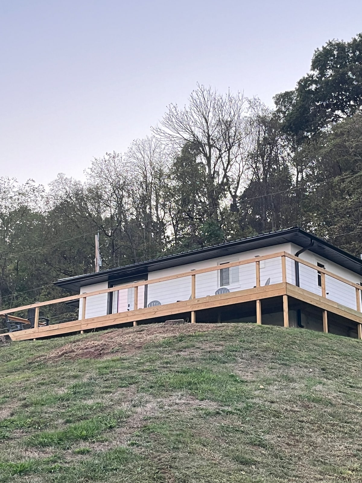 Ovo je privatna seoska kuća ispred rijeke Ohajo na 7 hektara . Ova seoska kuća ima spavaću sobu, dnevni boravak, kupatilo sa tušem, veliku terasu sa mrežom i zasebnu spoljnu terasu. Na palubi se nalazi i roštilj. Ovo je sjajno mesto za bijeg od stresa i opuštanje! Ova seoska kuća ima Wi-Fi i TV ravnog ekrana sa ravnim ekranom od 55 inča. Uživajte u pogledu na rijeku i posmatrajte divljinu. Jednostavan pristup lokalnim prodavnicama , bolnicama i restoranima 10-15 minuta. Prikladno za kućne ljubimce uz malu naknadu