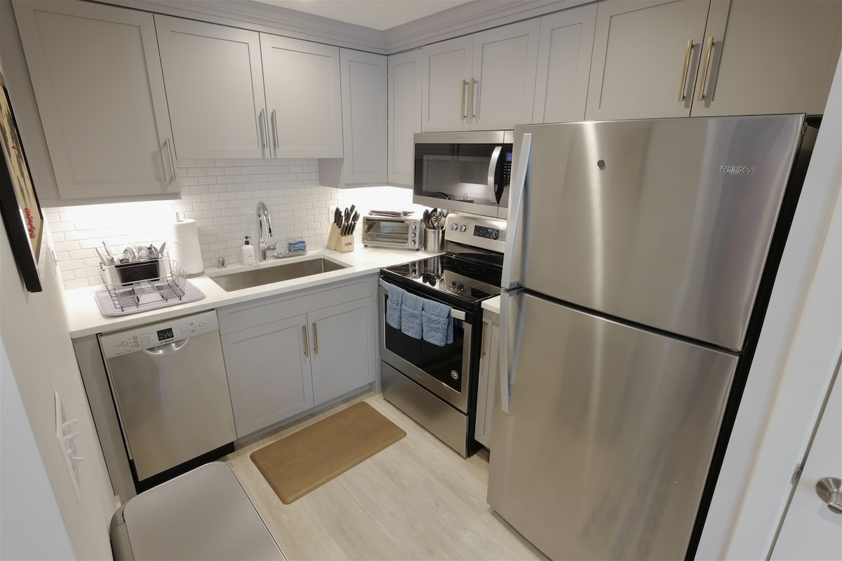 Odsjest ćete u prizemnoj jedinici sa zasebnim ulazom u šarmantnu kuću u nizu u srcu četvrti Logan Circle u Vašingtonu. Udaljeni smo nekoliko blokova od najboljih gradskih barova i restorana u 14. ulici. Imaćete pristup našoj propusnici za parking za posetioce, što omogućava parkiranje tokom vašeg boravka. Jedinica je opremljena bračnim krevetom, zasebnim dnevnim boravkom, radnom stanicom, mašinom za pranje i sušenje veša, TV-om i internetom, čajnom kuhinjom i kupatilom.