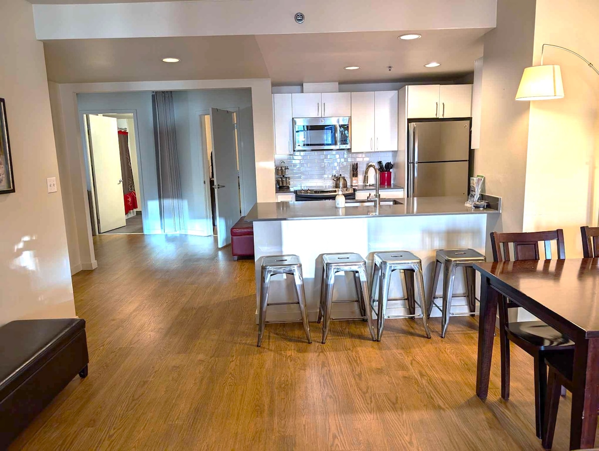Pravila otkazivanja od 30 dana za povraćaj cjelokupnog iznosa! Profesionalno očišćeno i dezinfikovano između boravaka gostiju. Naš divni tim za čišćenje radi sa nama više od10 godina. Lučke stepenice su blizu svega što želite da radite/vidite u Sijetlu! Dopašće vam se ova ogromna dvokrevetna jedinica sa 2 kupatila i prostorom za boravak/kutak zbog zadivljujućeg pogleda na Pjudžet Saund, odlične službe za korisnike i savršene lokacije u centru Sijetla (u blizini pijace Pajk Pl i obale) - ocjena 99. Može da spava 8, ali najviše 6 odraslih osoba.