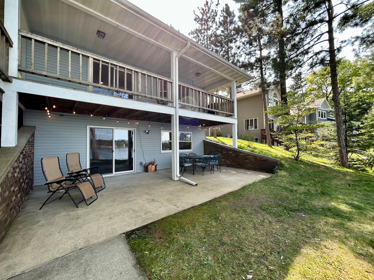 Lakefront cabin with private dock, epic game room, and all the gear for lake fun! Enjoy a 75" movie screen, cozy firepit, and kid-friendly loft. Walk down to your sandy beach for kayaking, swimming, or paddling. Full-rec lake fun in summer, skiing at Nordic Mountain in winter—your all-season escape! 🏖 Private beach – Swim, kayak & fish 🔥 Firepit + firewood – S’mores under the stars 🎮 Game room – All-weather fun! 🚤 Full recreation lake – boat, tube, play! ⛷ Nordic Mountain – Skiing & trails